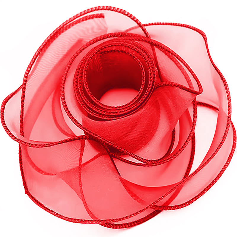 Лента декоративная, Органза с леской Красный / 4 см*9,14 м