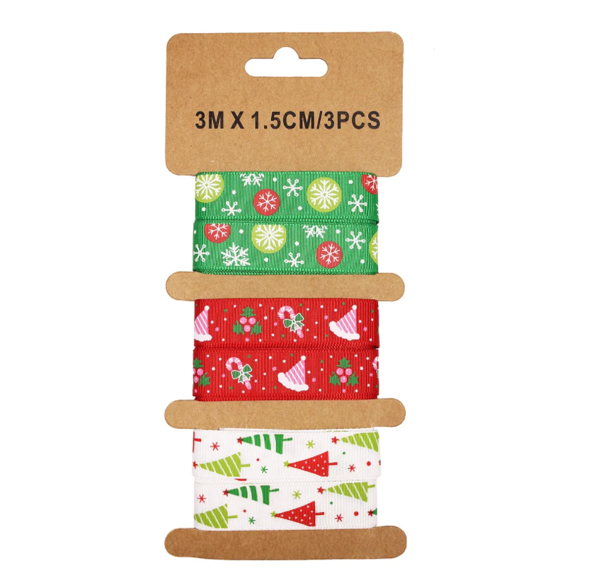 Набор лент Новый Год 1,5 см. х 3 м., 3 шт.3 цвета (зелёный, красный, белый)/Сф