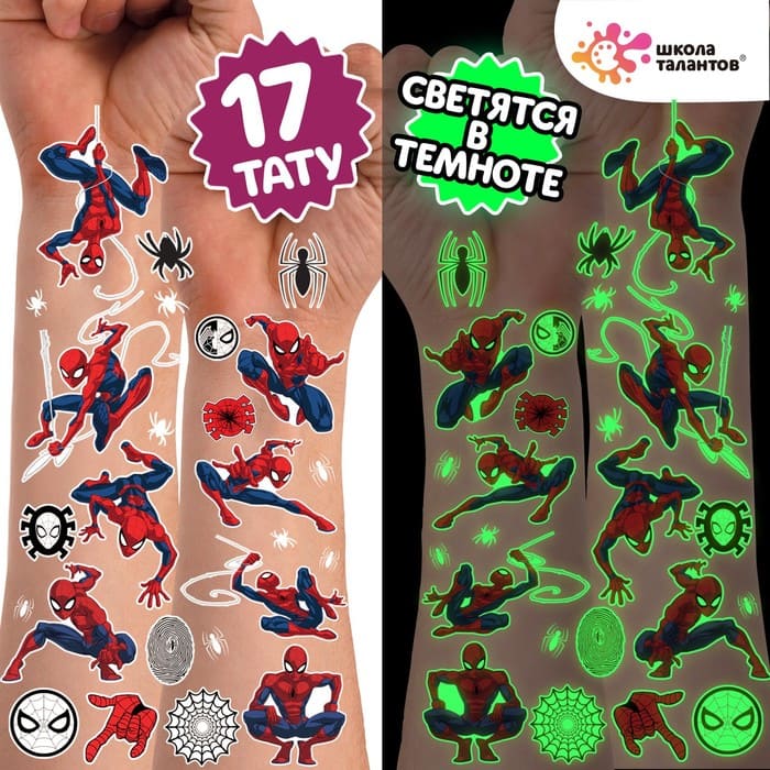 Наклейки переводные светятся в темноте Человек паук