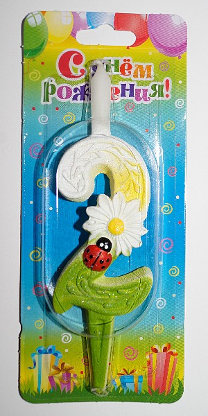 Свеча тортовая цифра С ромашками 2