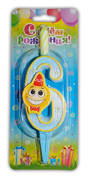 Свеча тортовая цифра Смайлик 6