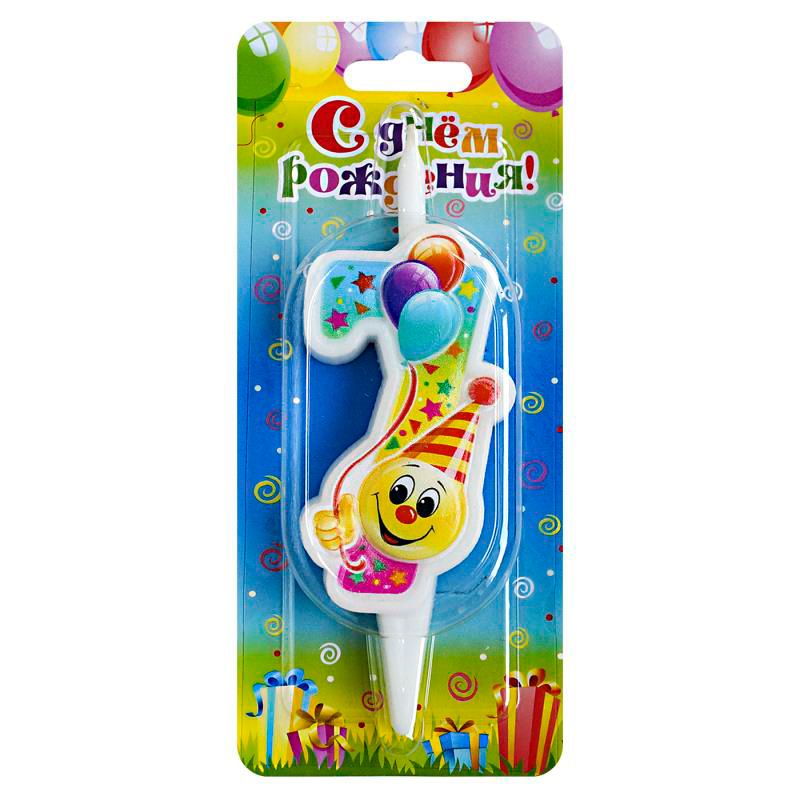 Свеча тортовая цифра Смайлик с шарами 7