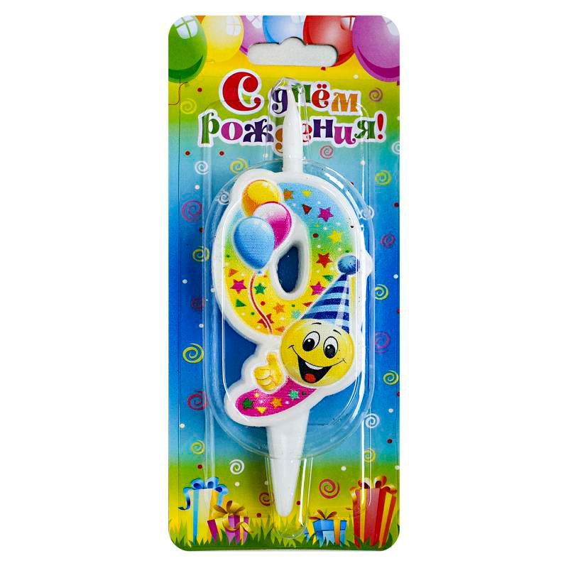 Свеча тортовая цифра Смайлик с шарами 9