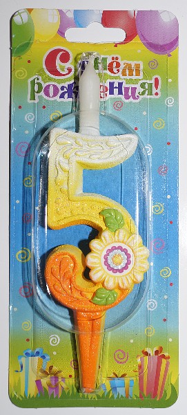 Свеча тортовая цифра Солнечная 5