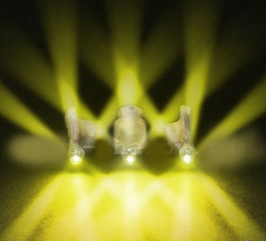 Выводной светодиод с малым внешним радиусом удобен при применении в индикации и подсветке устройств с низким энергопотреблением.