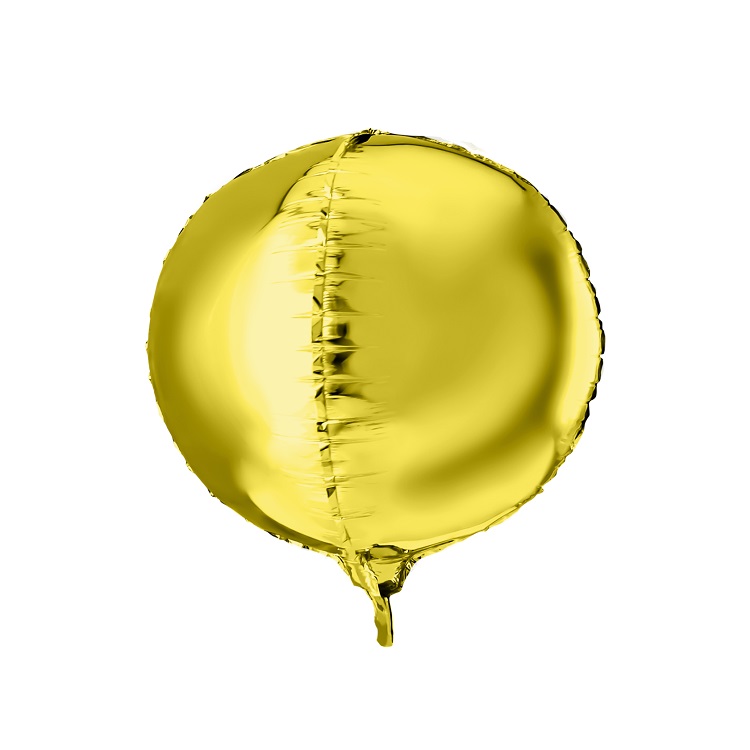 Стильный, объемный 3D шар из прочной пленки золотого цвета. При надувании рекомендуется использовать гелий. Имеет встроенный клапан, что упрощает надувание. В надутом состоянии образуется объемная сфера