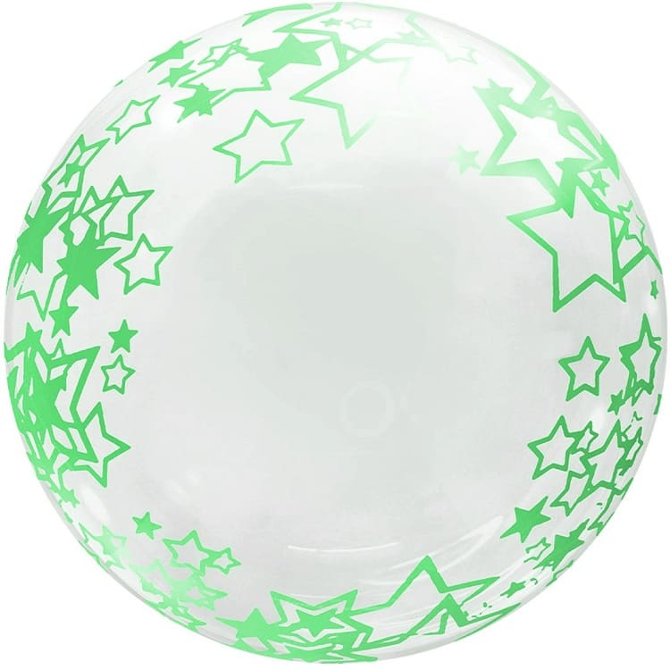 Шар Х 18" Сфера 3D, Deco Bubble, Зеленые звезды, Прозрачный, Кристалл, 1 шт. в упаковке