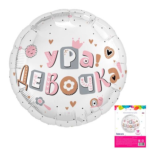 Шар Аg 18" Круг, РУС Ура Девочка
