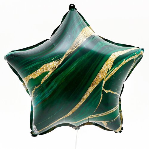 Шар из фольги в форме звезды выглядит стильно и современно. Его дизайн напоминает узор камня малахит. С помощью шаров можно легко оформить помещение для праздника. Шары можно подвесить под потолок или разложить по полу, собрать из них букет или прикрепить к стене.