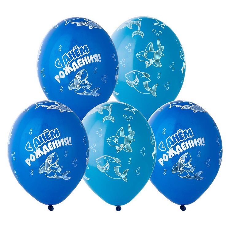 Высококачественный шар из натурального латекса. Ассорти из 2 синих цветов разных оттенков, одного типа - пастель - матовый оттенок цвета. Шары с пятисторонним - круговая печать, шелкографическим рисунком на тему День Рождения. Акула. Морской мир. Морские животные. Предназначен для розничной продажи воздушных шариков. Идеальный ассортимент для праздничных оформлений. Воздушные шары изготавливаются из экологически безопасного 100%-ного натурального латекса. В окружающей среде разлагаются на безопасные компоненты примерно с той-же скоростью, как обычные листья деревьев. После использования лопнуть и утилизировать как бытовой отход.