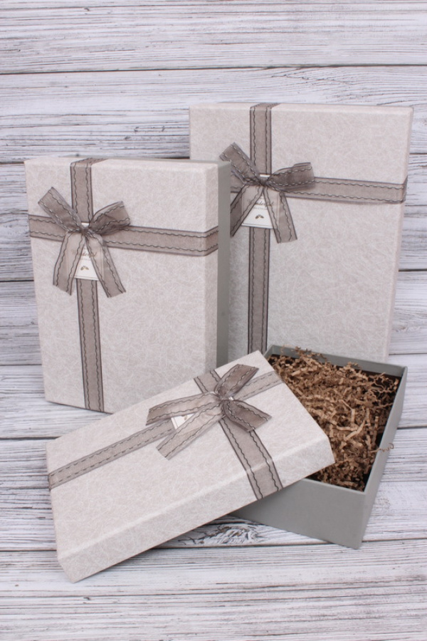 Набор коробок, Прямоугольник бант органза, серый, 33*24*11 см, 3 шт