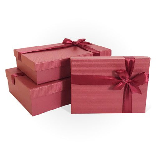 Набор подарочных коробок 3в1 с бантом тиснение Микс, 290*190*90 (Прямоугольн, Алый)