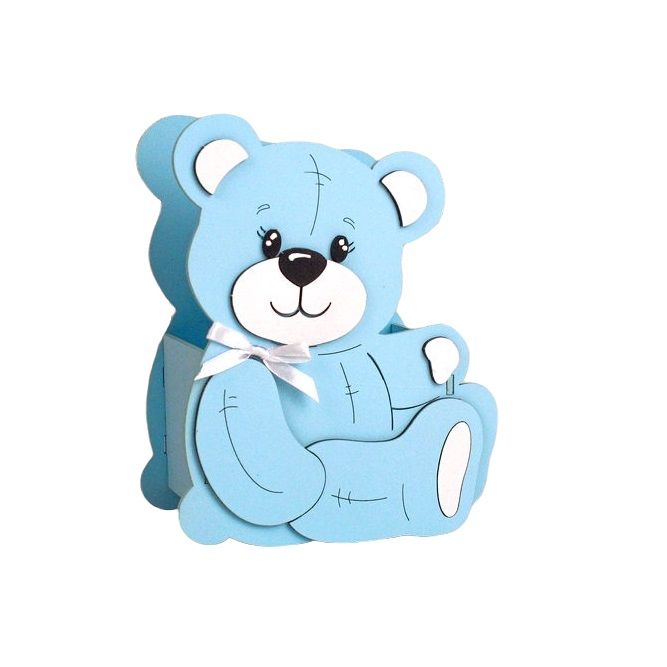 Подарочная упаковка "Мишутка" малый (13,5*7*16,5) МДФ, окраш., оформл., Голуб пастель-бел. /КГ