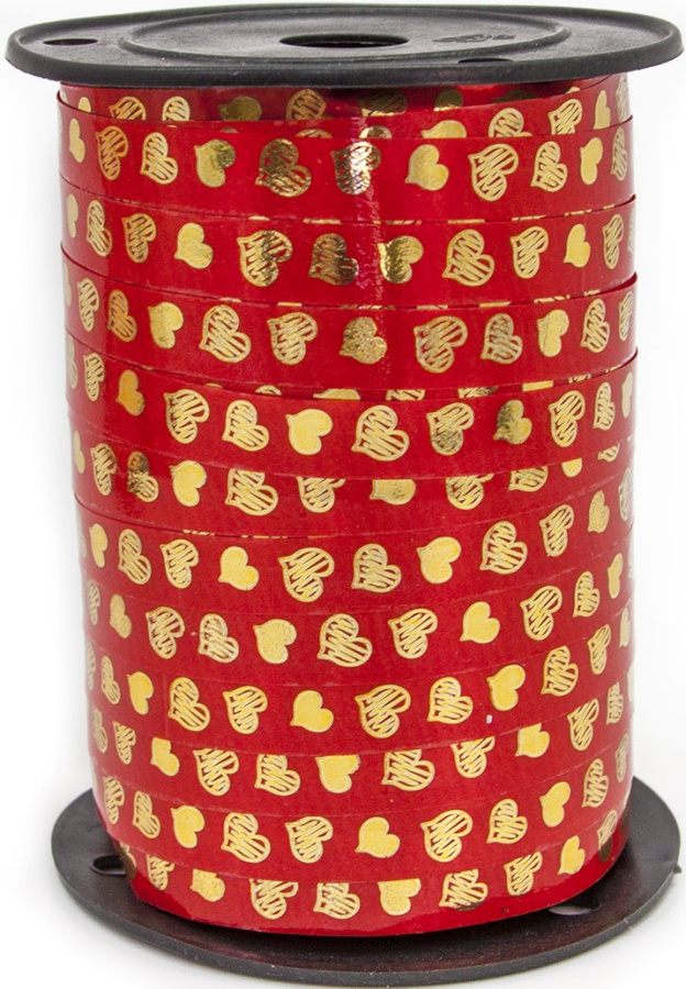 Лента (1 см*91,44 м) Золотые сердца, Красный, Металлик /ДБ