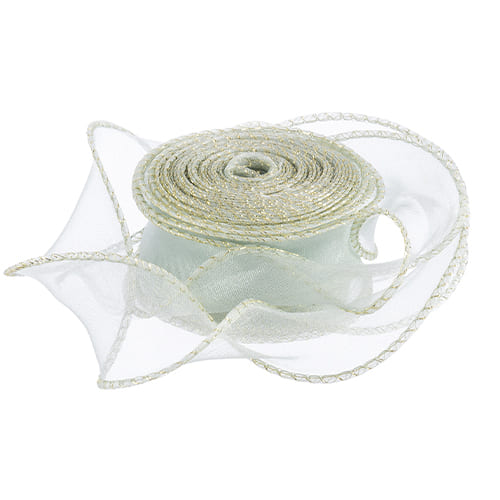 Лента декоративная, Органза с леской, Золотая кайма, Мятный / 4 см*9,14 м