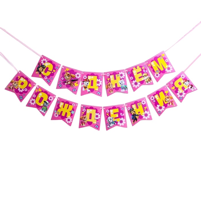 Гирлянда на ленте С днем рождения! Щенячий патруль, Скай, 215 см.