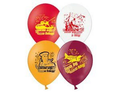 Высококачественный шар из натурального латекса. Ассорти из 10-12 цветов, одного типа - пастель - матовый оттенок цвета. Шары с двусторонним шелкографическим рисунком на тему "День Победы", "9 Мая", "Спасибо Деду за победу!", с большим полем печати. Идеальный ассортимент для розничной продажи воздушных шариков и украшения праздника.