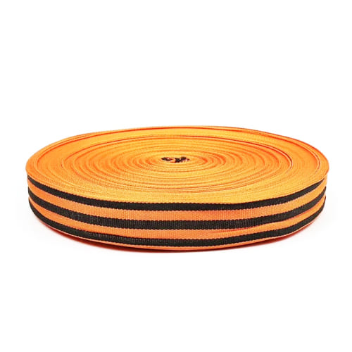 Георгиевская лента длиной 50 метров и шириной 2,5 см — это качественный и прочный аксессуар. Материал: текстиль.